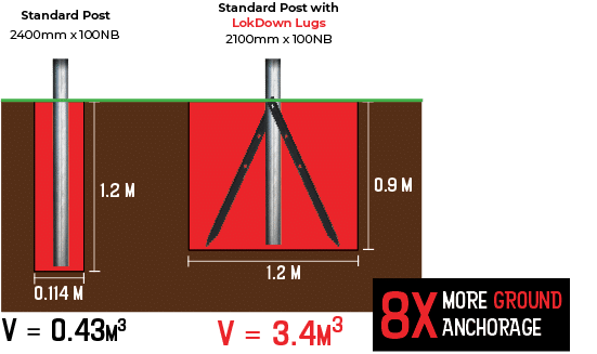I love the LokDown Lugs, especially with steep and rocky grounds. When I can’t get the strainer post all the way into the ground, I use the Lokdown lugs to lock it in, and it doesn’t twist or lift at all! I also used them a couple of week ago in Bathurst floods, the strainers would stand all the force from the water even trees, they didn’t move. Prior to the lugs I had concerns of the posts failing. Now I have no problems at all!